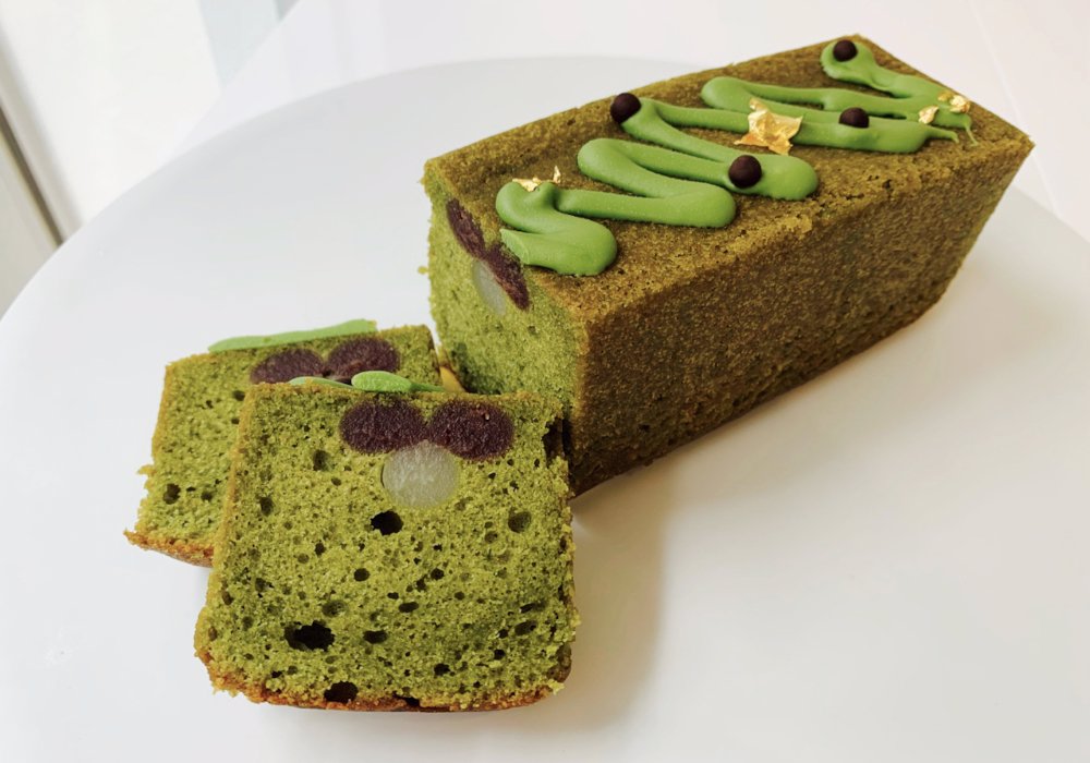 京都宇治のお抹茶を使用した和菓子のようなケーキ。白餡とこし餡を忍ばせ、旨味を凝縮させた一品。